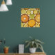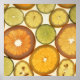 A fun design featuring various slices of citrus fruit in shades of orange, yellow and green.
