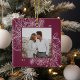 A modern and elegant holiday ornament that frames your favorite square photo in a beautifully detailed frame with pine boughs, winter leaves, star anise, and citrus slices on a rich burgundy plum background. Personalize the back of this unique Christmas photo ornament with your family name.