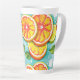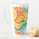 This large latte mug showcases a vibrant citrus design featuring juicy slices of orange, lemon, and lime illustrated in a lively, modern style. Set against a bright teal background with dynamic splash accents and fresh green leaves, the artwork creates an energizing, refreshing look that brightens every morning ritual. With its tall, elegant shape and generous capacity, this mug is perfect for lattes, cappuccinos, tea, cocoa, or cozy evening drinks. Durable, glossy, and full of personality, it brings a burst of color to daily routines and makes a cheerful, memorable gift for fruit lovers and fans of uplifting design.