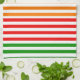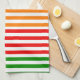 Citrus Stripes Kitchen Towel, bright red, green orange and yellow stripes on a white background. This towel is absorbant and wonderful to use to dry freshly washed fruits and vegetables on. A great hostess gift.
