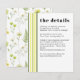 Keep your guests informed with this stylish "Details" enclosure card. The front features the signature preppy vertical stripes of our Citrus Wildflower collection, in citrus green and buttercup yellow, paired with modern, bold serif typography. The reverse side is a beautiful "moment," showcasing an all-over, hand-painted wildflower and fern pattern. This card is perfect for sharing accommodation blocks, travel logistics, and wedding website information for your upscale garden or outdoor celebration.
