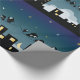 Birds on a wire with a cityscape in the background under a starry sky. This design looks really effective on these Wrapping Paper