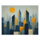 This digital art piece depicts the city in full sun. A display of the greatness of architecture looming High in the sky, the colors in this art piece gives high contrast to blues and yellows brilliantly bright and works well in any office space. if you're someone that lives in the condo in the downtown area this would work very well. But I do say you could display this in any room if you're looking for something that's bright and a place to exscape.