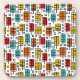 A colorful original retro-modern style design made up of rectangular leaf like motifs with offset color rectangles.