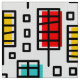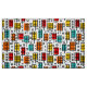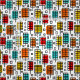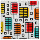 A colorful original retro-modern style design made up of rectangular leaf like motifs with offset color rectangles.