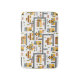 This custom city map themed bathroom bath mat makes a perfect gift for young boys and girls who love roads, towns, buildings, and vehicles. There is a pattern of a cafe restaurant, pizza parlor, and school in shades of yellow, red, and gray. There are also trees and fences. Add the name of your little kid for a personal touch.