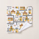 This custom city map themed bathroom bath towel set makes a perfect gift for young boys and girls who love roads, towns, buildings, and vehicles. There is a pattern of a cafe restaurant, pizza parlor, and school in shades of yellow, red, and gray. There are also trees and fences. Add the name of your little kid for a personal touch.