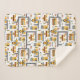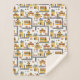This custom city map themed bedroom or nursery sherpa throw blanket makes a perfect gift for young boys and girls who love roads, towns, buildings, and vehicles. There is a pattern of a cafe restaurant, pizza parlor, and school in shades of yellow, red, and gray. There are also trees and fences. Add the name of your little kid for a personal touch.