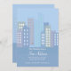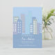 Urban buildings, in hues of blue, create this charming new address announcement (FP)