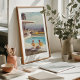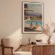 Step back in time to an era of effortless glamour with this stunning vintage-style photograph. Overlooking a sprawling city skyline from a chic mid-century modern hillside home, two women relax by a sparkling turquoise pool. The scene is bathed in the warm, hazy light of a perfect afternoon, highlighting the vibrant yellow lounge chairs and lush gardens. This artwork beautifully captures the essence of laid-back sophistication and nostalgic elegance, reminiscent of classic California in the 1960s. It's an ideal piece for those who appreciate retro architecture, vintage aesthetics, and the timeless allure of a poolside paradise.