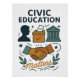 This bold and engaging “Civic Education Matters” design features a dynamic blend of icons that highlight the importance of civic participation. With imagery including a silhouette of a citizen, a ballot box with a check mark, a government building, and a handshake symbolizing unity, this artwork sends a strong, clear message about the value of being informed and involved in democratic processes.