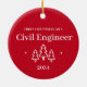 First Christmas as a civil engineer red ornament for a graduation or new job celebration. Customize it with any year. To add extra text please click the button to edit the design. Elegant porcelain ceramic holiday ornament featuring Christmas trees and stars.