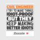 Funny Civil Engineer Sayings "Civil Engineer I Try To Make Things Idiot Proof But They Keep Making Better Idiots". Grab this Funny Civil Engineer design as a funny gifts for an awesome mom, dad or friend.