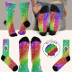 Clambake Rainbow Clam Shellfish Pattern Socks. Fun socks for women or men, and two styles are available. Keep this fun design and the wording or personalize it with your name or quote. Personalize to change the colorful clam shell for your photo. It will show up as a round image. Edit this to make more changes. Contact Sandy at admin@giftsyoutreasure.com with questions or a custom product.