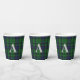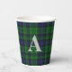 Plaid paper cup with the traditional Scottish blue and green clan Abercrombie tartan plaid pattern. Personalize the large light gray one letter monogram to suit your needs. Matching napkins and paper plates are available.