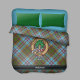 Clan Anderson crest badge surrounded by a strap and buckle over tartan background. Custom text.
