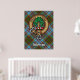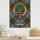 Clan Anderson crest badge surrounded by a strap and buckle over tartan background. Custom text.