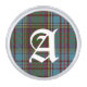 Stylish plaid lapel pin done in the colorful Anderson tartan plaid pattern. A large white one letter monogram sits in the middle of the plaid circle and is ready to personalize to suit your needs.