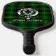Stylish paddle features Scottish Clan Arthur (MacArthur / Artair ) crest badge and customizable text on tartan background. Perfect gift idea for MacArthur pickleball lovers.