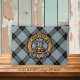 Clan Bell crest badge surrounded by a strap and buckle over tartan background. Custom text on both sides.