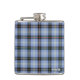 Monogrammed flask in the family tartan of Clan Bell, a traditional plaid pattern in light blue and black, with bright red, green, and yellow accents. Also known as Bell of the Borders. Available in two sizes.