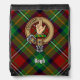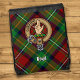 Clan Boyd crest badge surrounded by a strap and buckle over tartan background. Custom text.