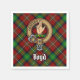 Clan Boyd crest badge surrounded by a strap and buckle over tartan background. Custom text.