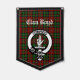 Handsome vertical pennant features Scottish Clan Boyd crest badge and customizable text on tartan background.