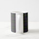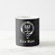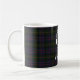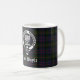 Coffee mug features Scottish Clan Boyle crest badge and text on tartan background.