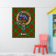 Clan Blue crest badge surrounded by a strap and buckle over hunting tartan background. Custom text.