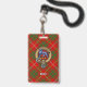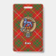 Clan Bruce crest badge surrounded by a strap and buckle over tartan background. Custom text.