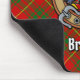 Clan Bruce crest badge surrounded by a strap and buckle over tartan background. Custom text.