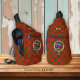 Clan Bruce crest badge surrounded by a strap and buckle over tartan background. Custom text.