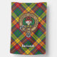 Buchanan crest badge surrounded by a strap and buckle over clan tartan background. Custom text.