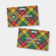 Clan Buchanan crest badge surrounded by a strap and buckle over tartan background. Custom text on both sides.