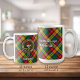 Clan Buchanan crest badge surrounded by a strap and buckle over tartan background. Custom text on both sides.
