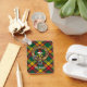 Buchanan crest badge surrounded by a strap and buckle over clan tartan background. Custom text on both sides.