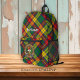 Clan Buchanan crest badge surrounded by a strap and buckle over tartan background. Custom text.