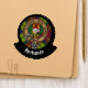 Buchanan crest badge surrounded by a strap and buckle over clan tartan background. Custom text.