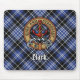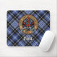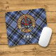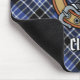 Clan Clark crest badge surrounded by a strap and buckle over tartan background. Custom text.