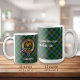 Clan Cockburn crest badge surrounded by a strap and buckle over tartan background. Custom text on both sides.