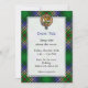 Clan Cockburn crest badge surrounded by a strap and buckle over tartan background. Custom text on both sides.
