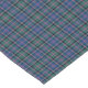 Table runner with a green, blue, black, Scottish tartan, with bright lavender and red highlights. Traditional Clan Cooper family plaid pattern from 1786.