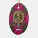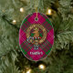Clan Crawford crest badge surrounded by a strap and buckle over tartan background. Custom text on both sides.