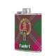 Clan Crawford crest badge surrounded by a strap and buckle over tartan. Custom text.