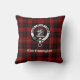 Stylish throw pillow featuring Scottish Clan Cunningham crest badge and customizable text on tartan plaid background