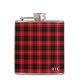 Monogrammed flask with the tartan for Clan Cunningham and its septs, including Warnebald. Bright red and black Scottish plaid pattern from around 1829, with grey and white accents.