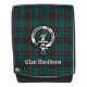 Scottish Clan Davidson's modern tartan plaid pattern background with crest badge and text overlay