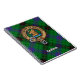 Clan Davidson crest badge surrounded by a strap and buckle over tartan background. Custom text.