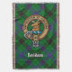 Clan Davidson crest badge surrounded by a strap and buckle over tartan background. Custom text.
